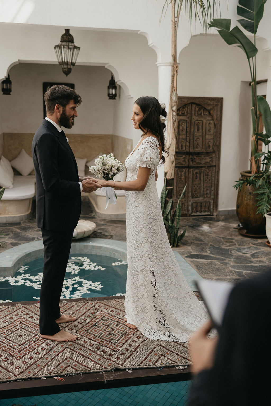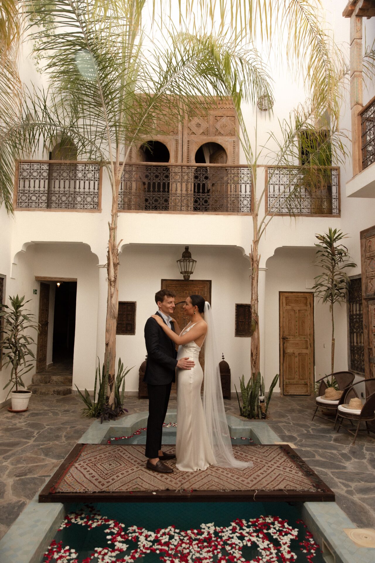 Il tuo matrimonio qui, infatti, sarà un’esperienza irripetibile, un evento davvero unico, cucito su misura per voi! Potrai concederti il lusso di soddisfare le esigenze di nessun altro oltre alle tue, senza la preoccupazione e il peso delle aspettative di una lunga lista di invitati. Infatti, scegliendo una fuga d’amore a Marrakech hai l’enorme vantaggio di poter eliminare questo compito stressante dalla tua lista di cose da fare, in modo che tu possa concentrarti sugli elementi che renderanno il giorno più speciale della tua vita davvero tuo! E, aspetto non meno importante, anche la spesa dell’evento, risulterà decisamente ridotta, pur assicurandoti di non comprometterne la bellezza. Tutt’altro! Se pensi che riad Alkemia possa essere lo scenario che fa per voi, che il suo stile un così ricercatamente bohemienne, i suoi muri bianchi, le sue antiche porte e la maniacale attenzione ai dettagli possano essere la cornice del vostro giorno speciale, possiamo anche rassicurarti dal punto di vista logistico e organizzativo.